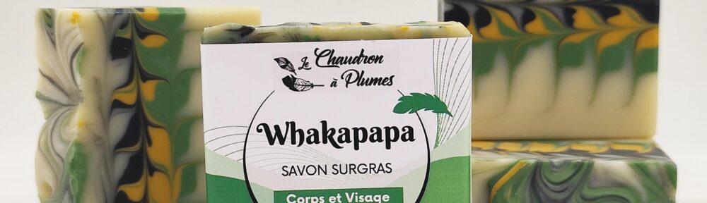 Whakapapa est un savon surgras très doux fabriqué grâce à la méthode de saponification à froid, ce qui le rend naturellement riche en glycérine .
